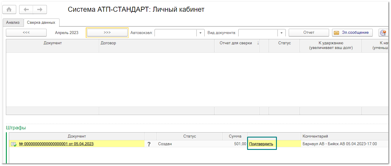 В ЛК перевозчика в разделе Документооборот - Штрафы появится сообщение, в котором он должен выразить согласие или