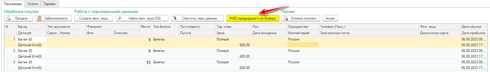 Когда откроется форма продажи билетов нажмите кнопку ФИО предыдущего из буфера.