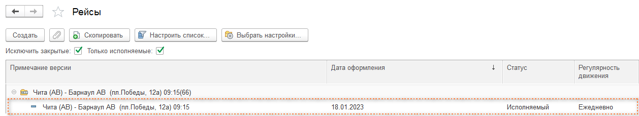 Выбираем нужный нам рейс, на + разворачиваем его и открываем.