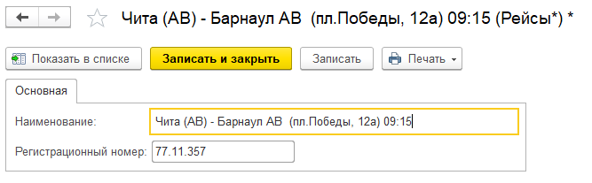 В поле "Регистрационный номер" заполняем номер согласно карты маршрута. Регистрационный номер берется из карты маршрута. Заполняется в полном соответствии. Номер может быть в двух форматах: 77.11.357 или 11.22.123/5