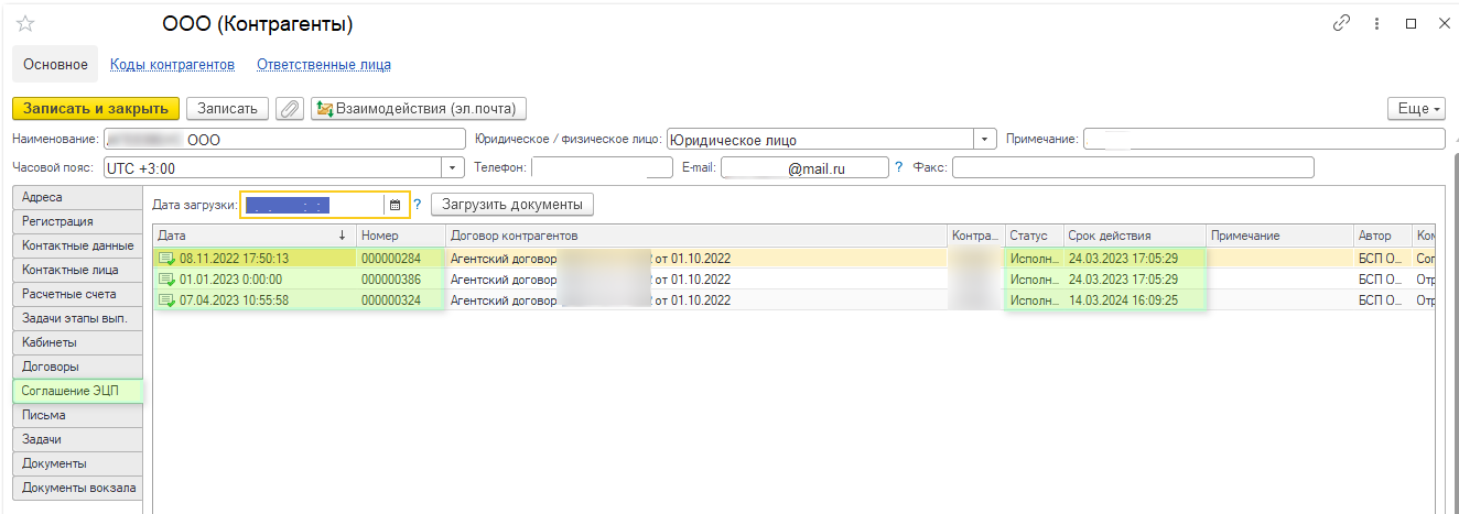 Карточка контрагента Меню Документооборот - Справочники - Контрагенты Рис.1. Пример списка соглашений в карточке контрагента