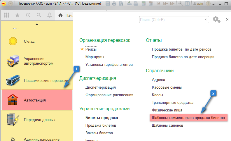 2. Далее "Шаблоны комментариев продажи билетов".