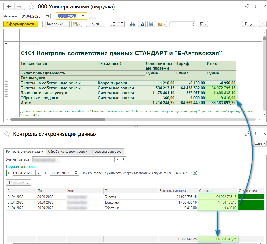 Рис 1. Сравнение отчетов 0100 и Контроля синхронизации данных совпадающих между собой