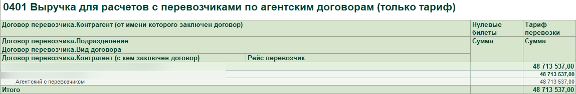 Раздел - 0401 Выручка для расчетов с перевозчиками по агентским договорам (тариф!)