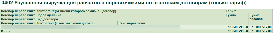 Раздел - 0402 Упущенная выручка для расчетов с перевозчиками по агентским договорам (тариф!)