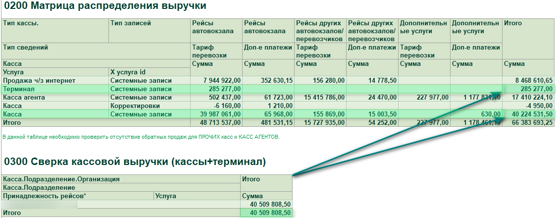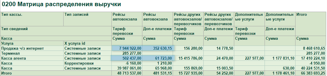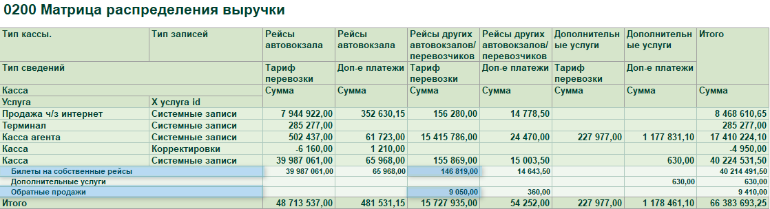 При сверке с Матрицей распределения выручки берем: касса агента и внешние подключения по своим и чужим рейсам,