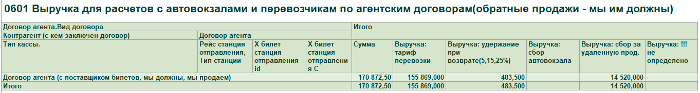 Раздел - 0601 Выручка для расчетов с автовокзалами и перевозчиками по агентским договорам