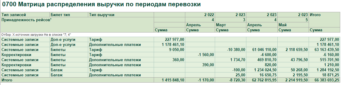Раздел - 0700 Матрица распределения выручки по периодам перевозки