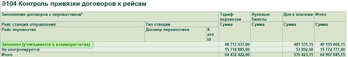 Раздел - 0104 Контроль привязки договоров к рейсам