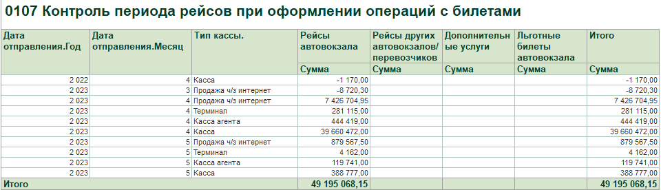 продажа билетов при этом осуществляется. Итог этого отчета совпадает с 0100, колонка выручки без учета нулевых билетов.
