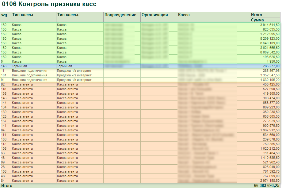 В данном отчете не должно быть касс без привязки к подразделению, т.к. дальнейшие данные уже могут быть недостоверными