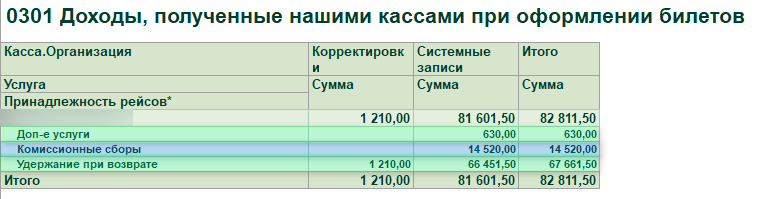 Раздел - 0301 Доходы, полученные кассами продаж при оформлении билетов и доп.услуг