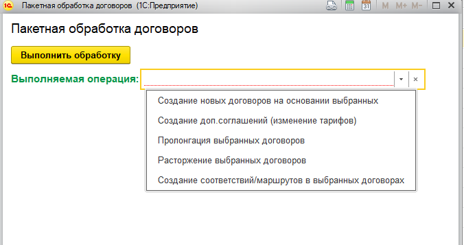 Выделите договор (или несколько договоров) , с которым будет производиться работа и нажмите кнопку Пакетная обработка документов.
