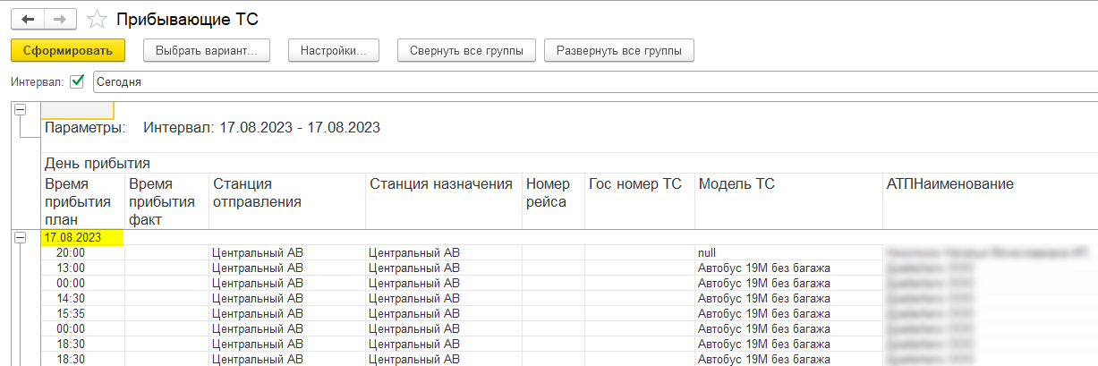 Прибывающие ТС Прибывающие ТС - можно просмотреть список ТС, прибывающих в заданный день, владелец ТС, вместимость автобуса, станция назначения и отправления, а так же номер ТС.