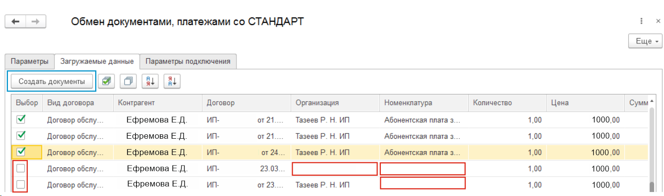 Если Вам не нужны все документы в списке, то снимите галочку в столбце Выбор с такого документа. Нажмите кнопку Создать документы.