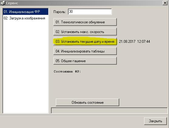 Если время в кассе отличается от времени ПК, то можно воспользоваться следующим способом синхронизации: