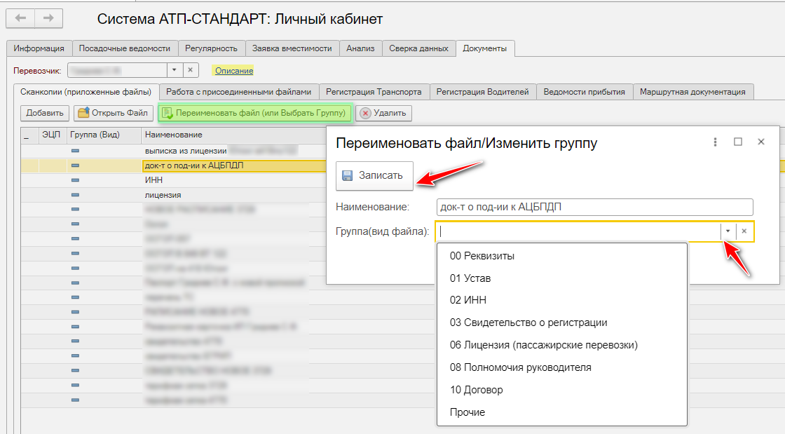 Сканкопии В данном разделе перевозчик может прикрепить документы через кнопку Добавить. Вы можете переименовать документ или переместить его в предустановленные папки: