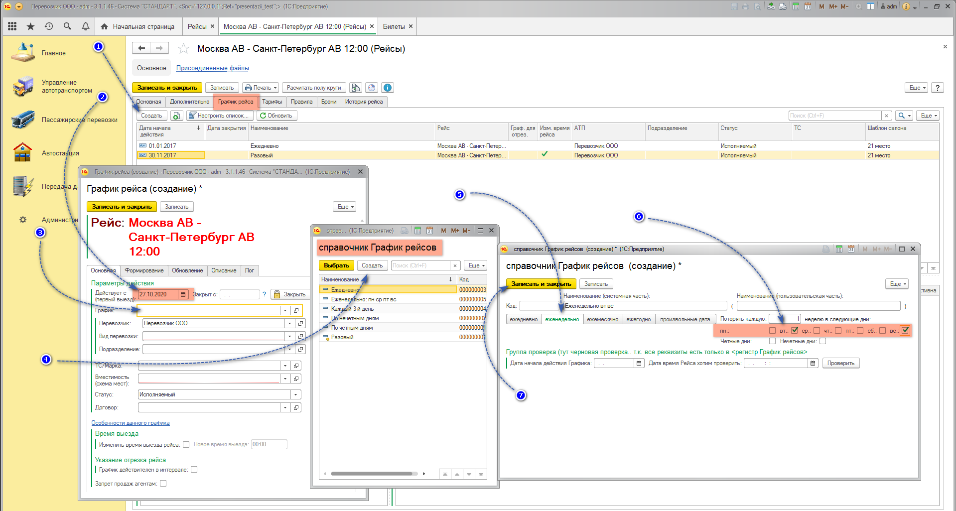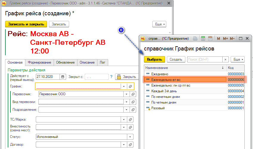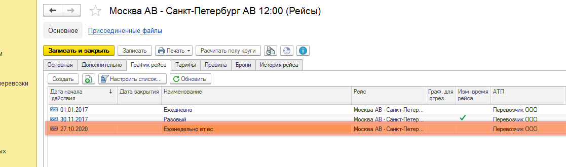 В списке ""Справочник График рейсов" появится новый график и его можно будет выбрать: