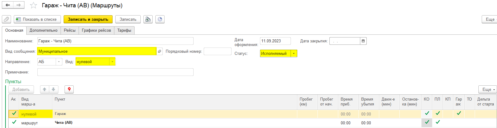 Создание маршрута с нулевым пробегом