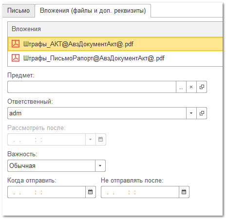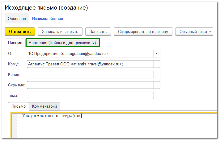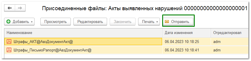 На вкладке Вложения вы увидите прикрепленные документы. Нажмите кнопку Отправить.