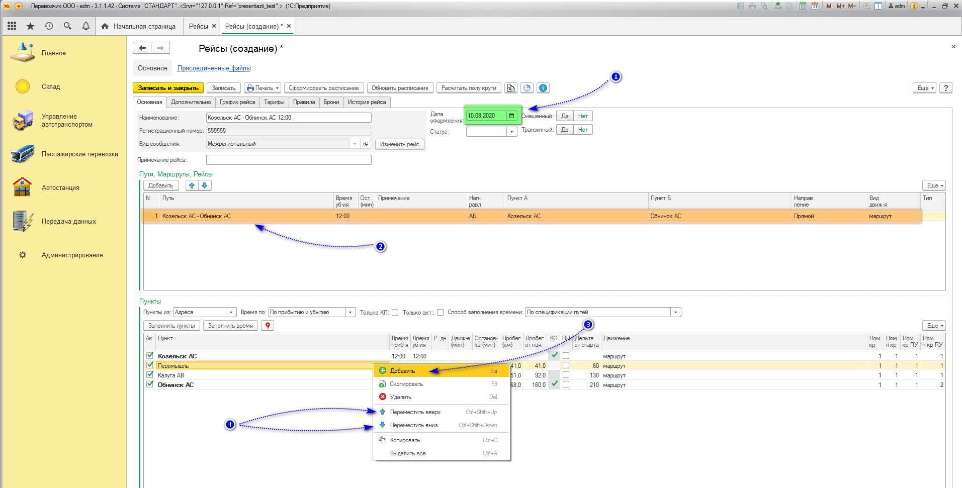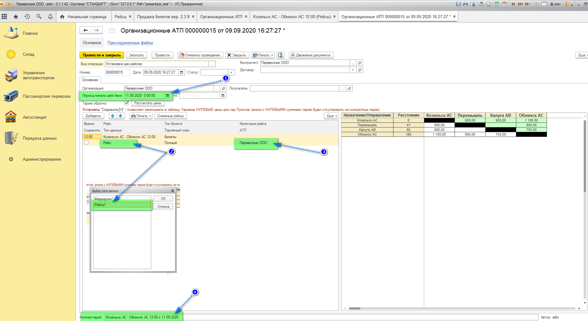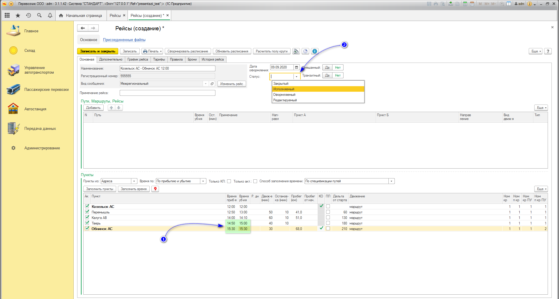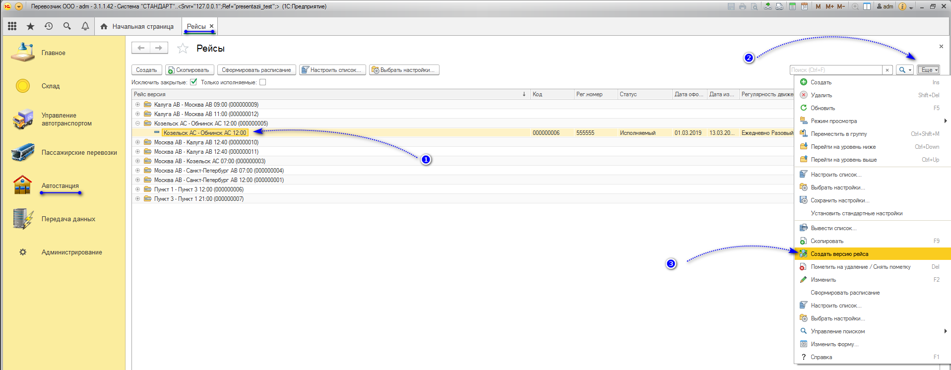 1. Автостанция -> Рейсы. Выбрать нужный рейс (курсор на нужную строку).