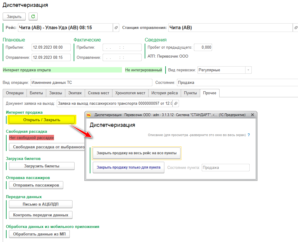 Меню Автостанция - Диспетчеризация - Диспетчеризация - Прочее - Интернет продажа